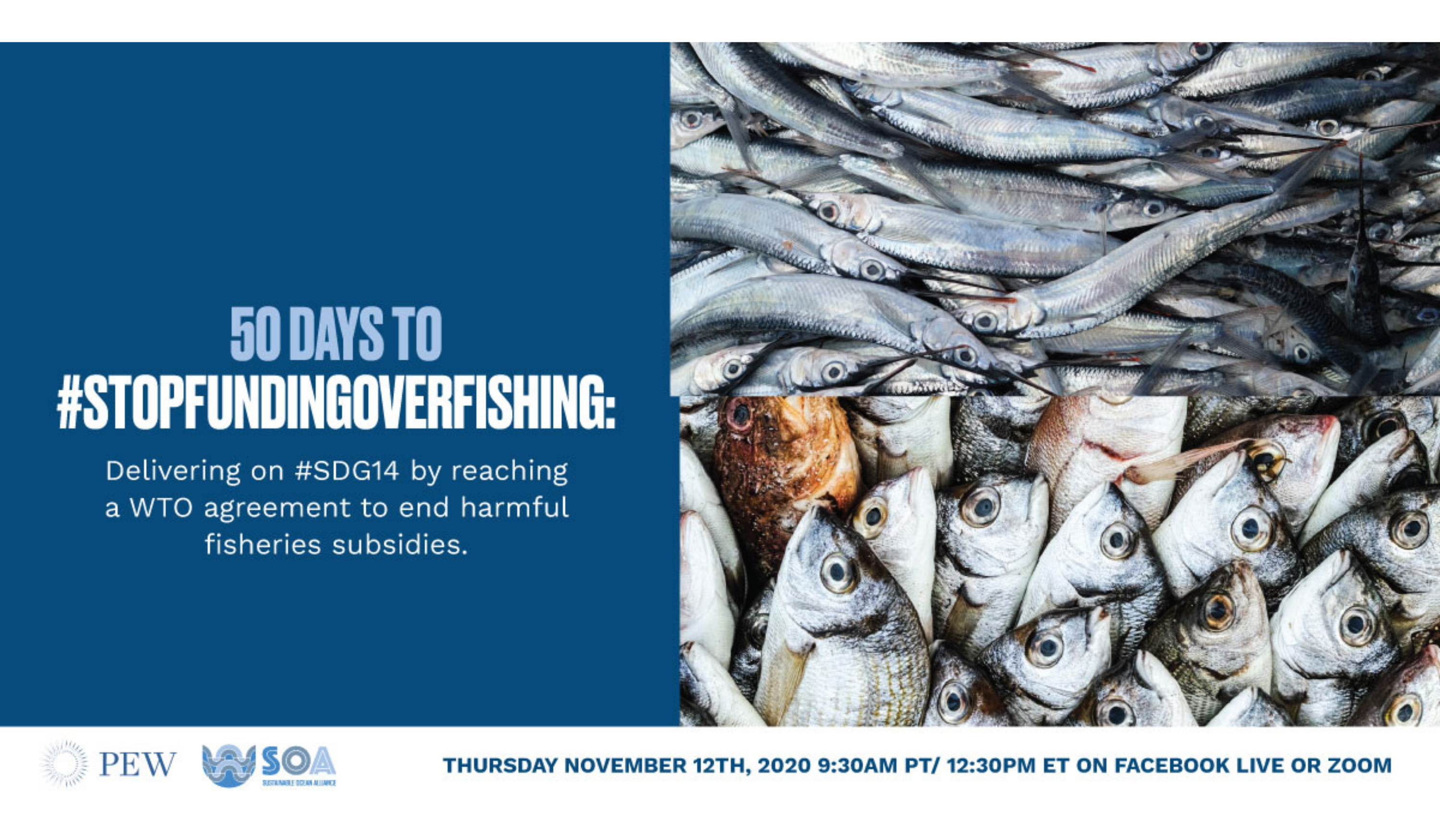 On Nov 12, there will be 49 days until the WTO’s deadline to reach an agreement. SOA’s ocean leaders are young people giving a voice to the issues that our planet faces. In this Ocean Learning Lab, SOA’s ocean leaders will explore the environmental imperative to end harmful subsidies in order to help restore ocean health, discover tools to assess the impact of a potential WTO agreement to end harmful fisheries subsidies, and learn how they can contribute to civil society support for an agreement. Suggested speakers to include: